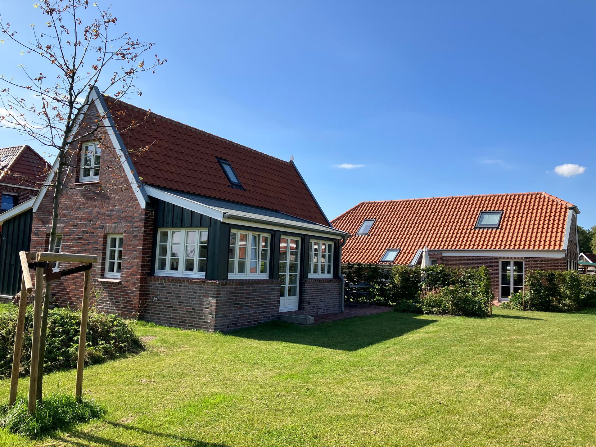 Ferienhaus Lüsthuuske (ca. 70 m² Wohnfläche) verfügt über ein Wohnzimmer und zwei Schlafzimmer. Die Küche befindet sich in einer typisch ostfriesischen Veranda mit Essplatz und wunderschöner Aussicht. Das Haus verfügt über ein modernes Tageslichtbad, eine sichtgeschützte Gartenterrasse mit hochwertigen Fermob-Gartenmöbeln und eine Spiel- und Liegewiese im großen Garten. Das freistehende Lüsthuuske bietet Platz für 4 Personen zur alleinigen Nutzung. Es kann optional das Apartment De Schüür dazu gemietet werden.